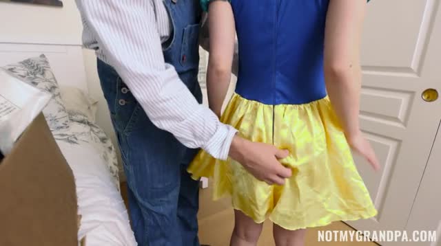 Old man seduces blonde maid into serving his old dick