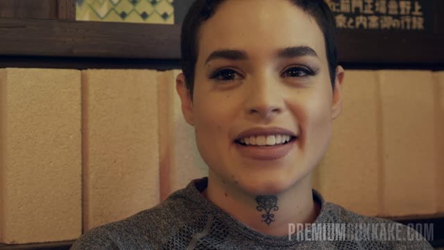 Being drenched in cum, she still wants more and crawls to the shower after gulping one more.