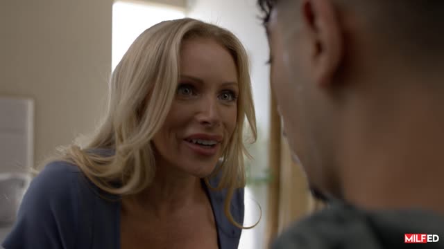 Petite au pair Alison Rey wakes up feeling refreshed for another day with her host family. She feels a little horny so decides to play with her pussy before she rushes into the kitchen. She is surprised to find that her boss, Goldey is home alone while the rest of the family have gone out on a trip. He becomes increasingly flirty with Alison and offers to massage her shoulders. One thing leads to another and the two of them decide to use the empty house to their advantage. Their flirtation quickly becomes more intense as Alison kneels down to slurp on Goldey's BBC. She enjoys some oral pleasure too before getting her pussy fucked and they move their fun onto the couch where Alison rides Goldey's dick. This naughty pair fuck in all sorts of positions and Alison eagerly takes a messy facial to finish!